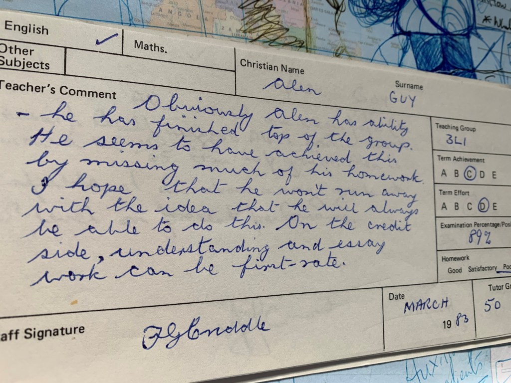 I have said that I lived with mum and dad until I was 10-11 yrs old. My Dad left and so started a series of events that culminated in me leaving school with a handful of ‘O’ levels. When you consider 8-9 of my school cohort went to Oxbridge, you can imagine a handful of ‘O’ levels was not much to fall back on. But comparing my last year of school to the previous 4 is not fair.